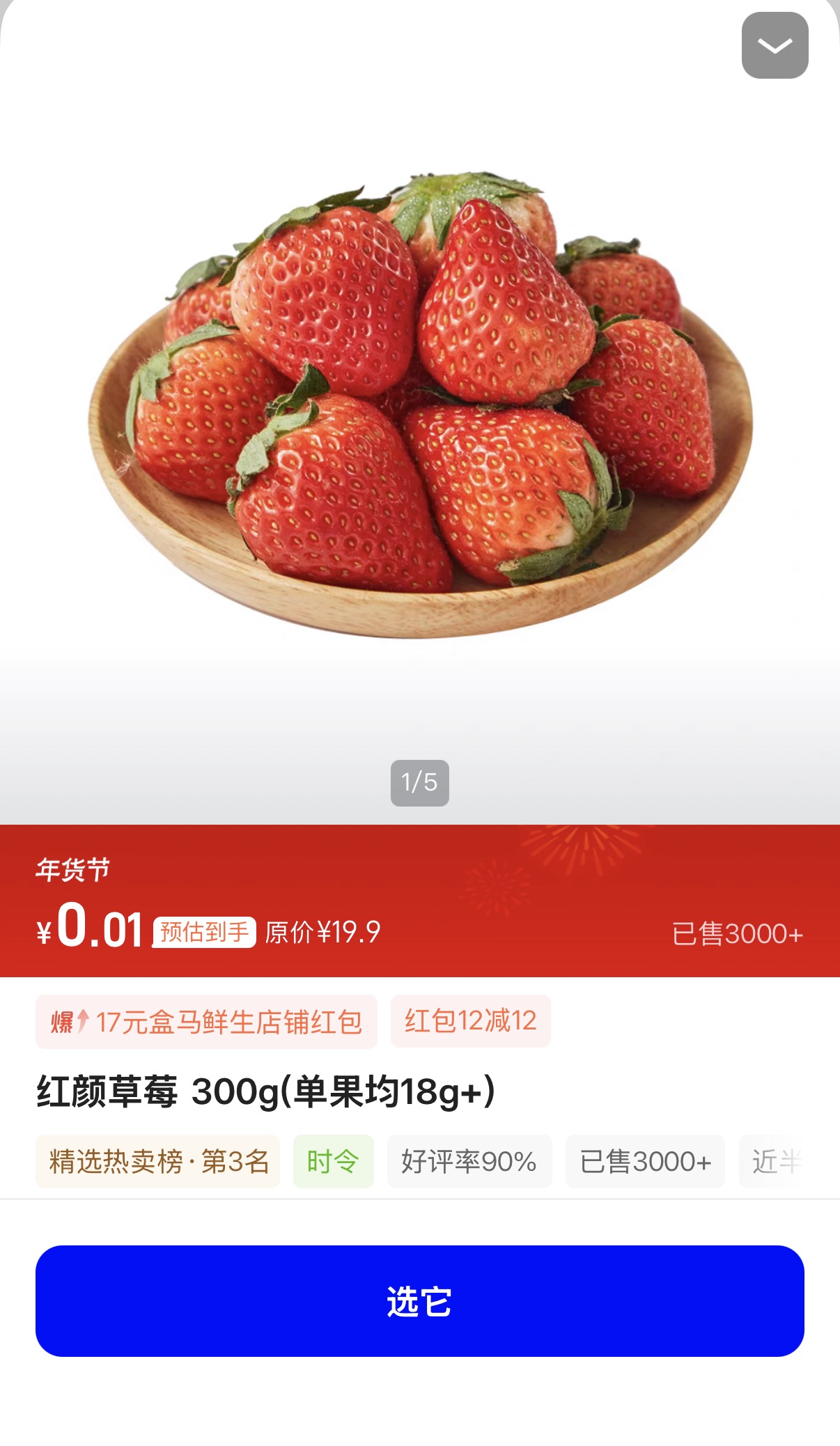记者实测用千问点到盒马0.01元草莓。应用截图