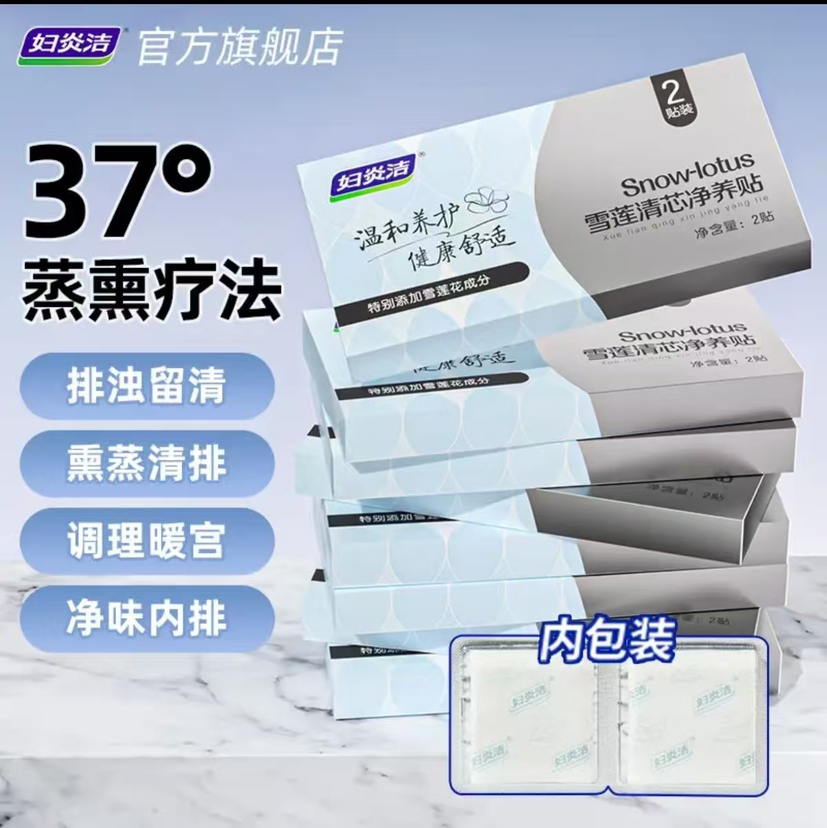 妇炎洁自营旗舰店所售“妇炎洁”雪莲清芯净养贴,宣称“37°蒸熏疗法”。 电商截图