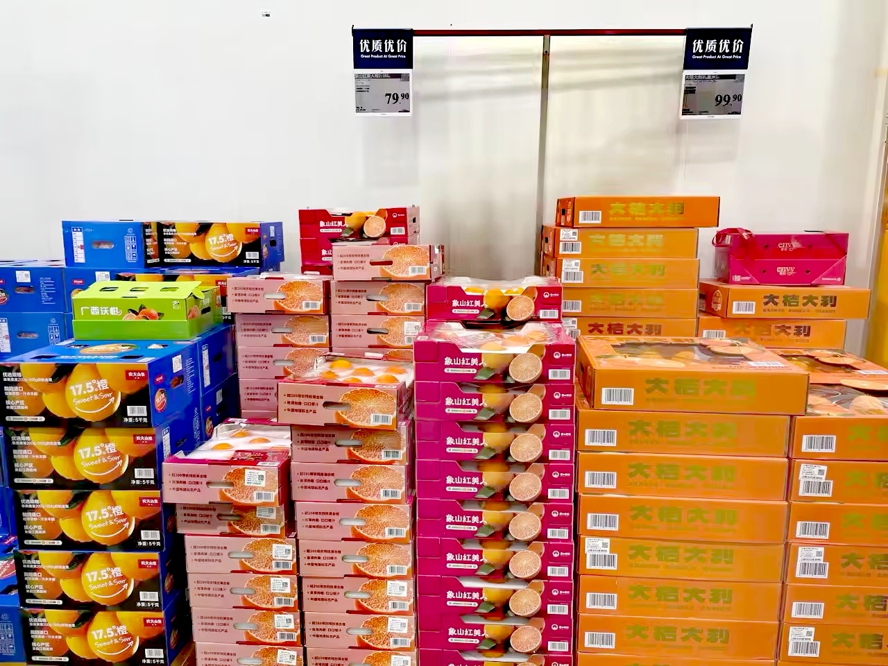 山姆会员店(亦庄店)柑橘类水果专区。