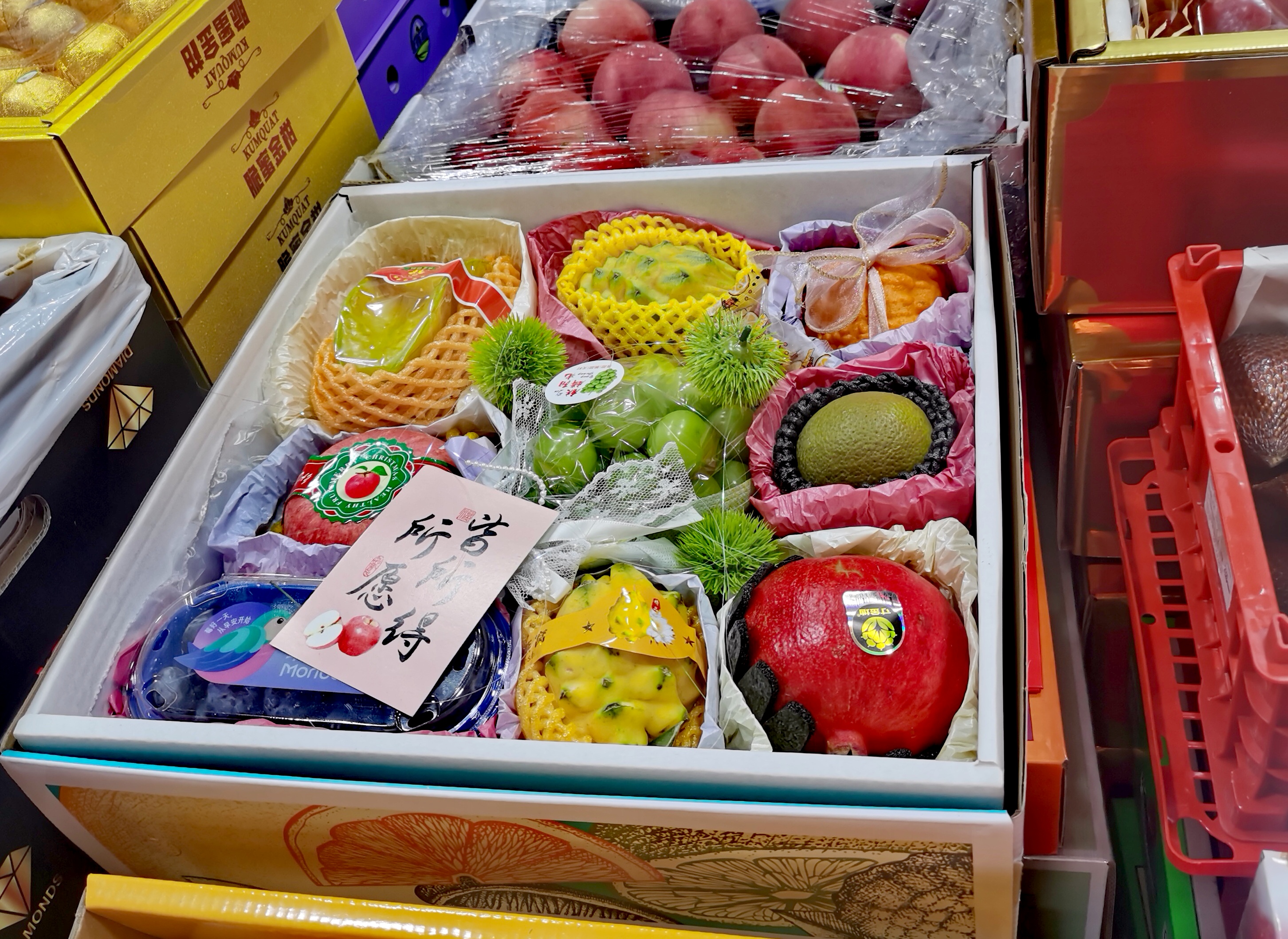 批发市场某商户展示的拼盘式礼盒。