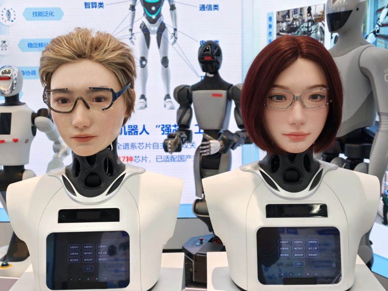 松延动力展示全栈自研的仿生人脸产品Hobbs3。图/松延动力微信公众号