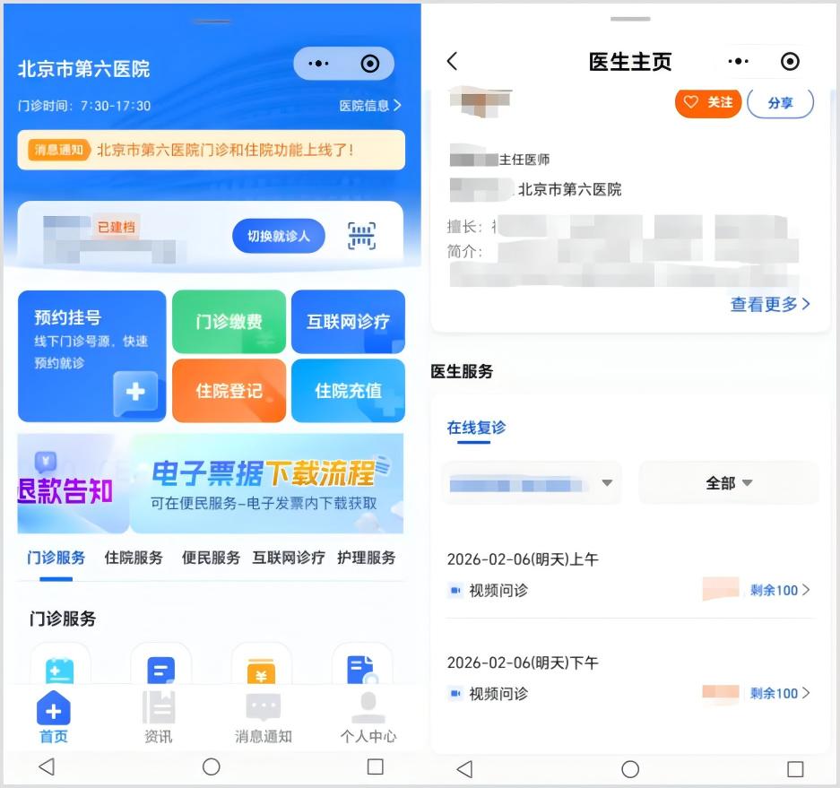 图/智慧医疗解决方案之互联网诊疗服务示意图(来源:北京市第六医院官方小程序)