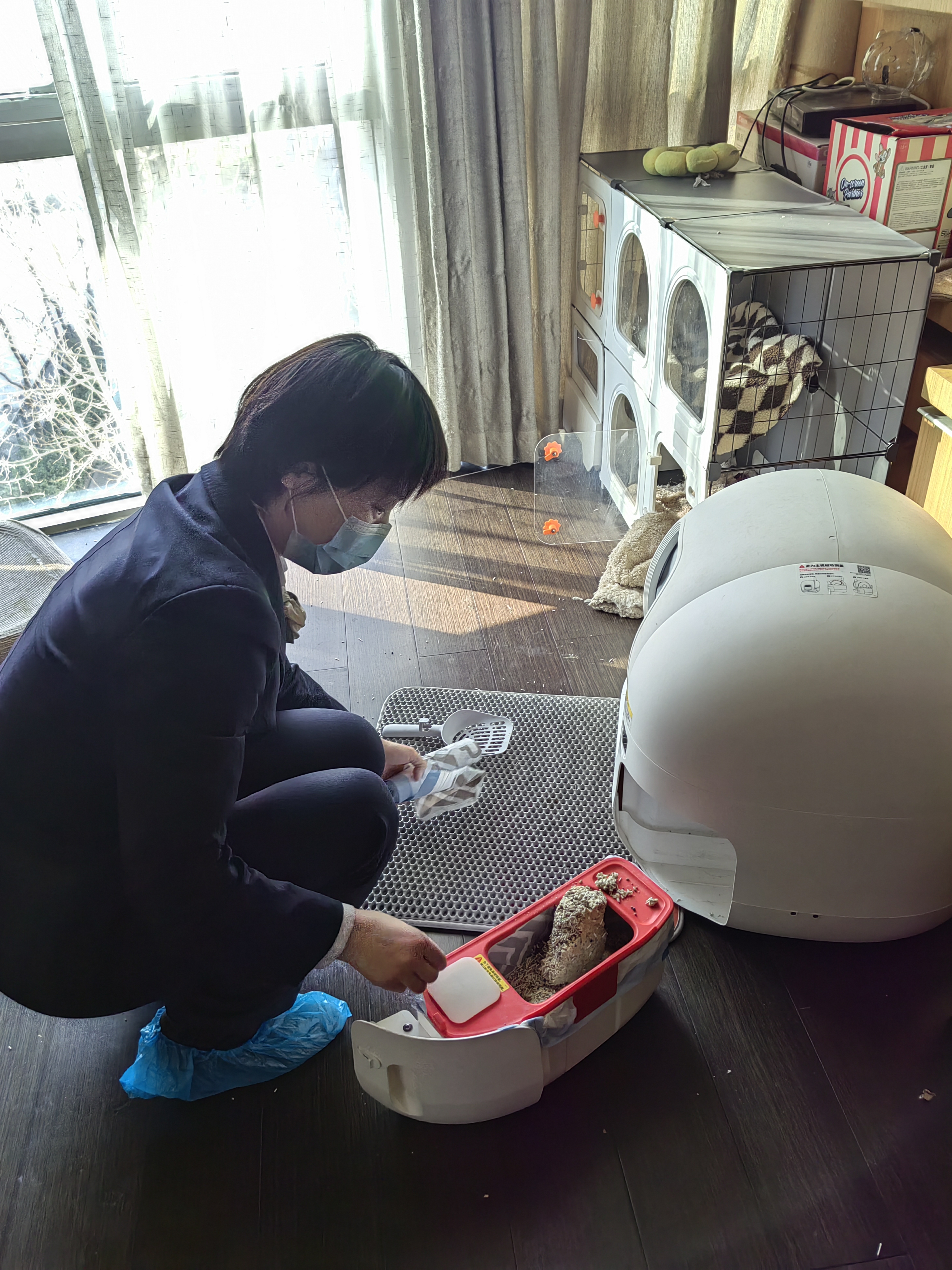 招商物业工作人员化身“临时家长”照顾宠物。