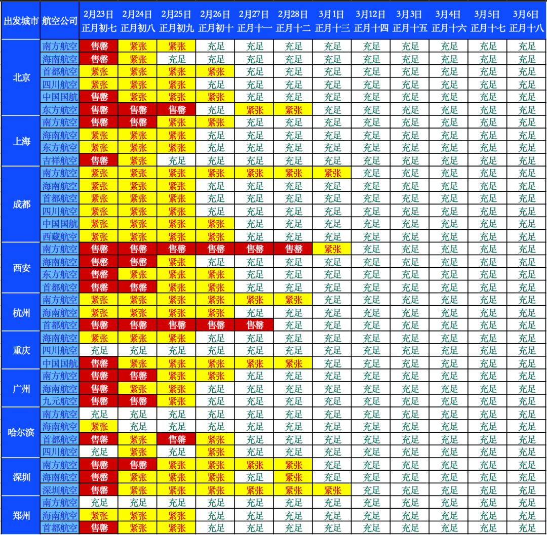 受此影响,“天价”机票价格再次显现,2月22日至23日,三亚飞北京、上海的直飞航班经济舱全部售罄,公务舱票价逼近万元;三亚飞往深圳的直飞机票2月24日售价超8000元。这种“天价机票”现象,正是市场供需严重失衡的直接体现。