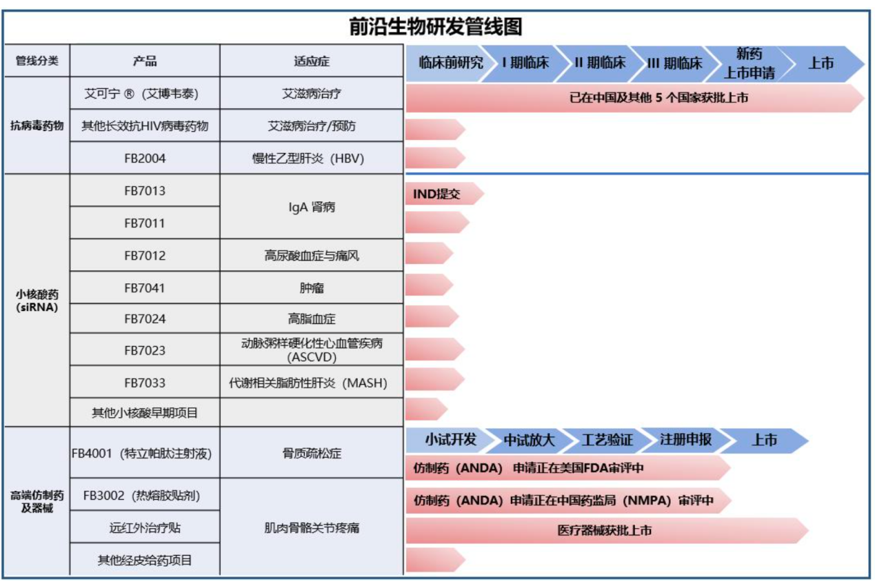 除此之外,前沿生物布局了多款在研产品,涉及领域包括畅销抗HIV病毒药物、小核酸药物和高端仿制药和器械。从其在研产品的研发进度来看,目前公司其余在研创新药均处于临床前研究阶段,这也意味着,很长一段时间内,前沿生物的产品销售收入仍可能将主要依赖于艾可宁。