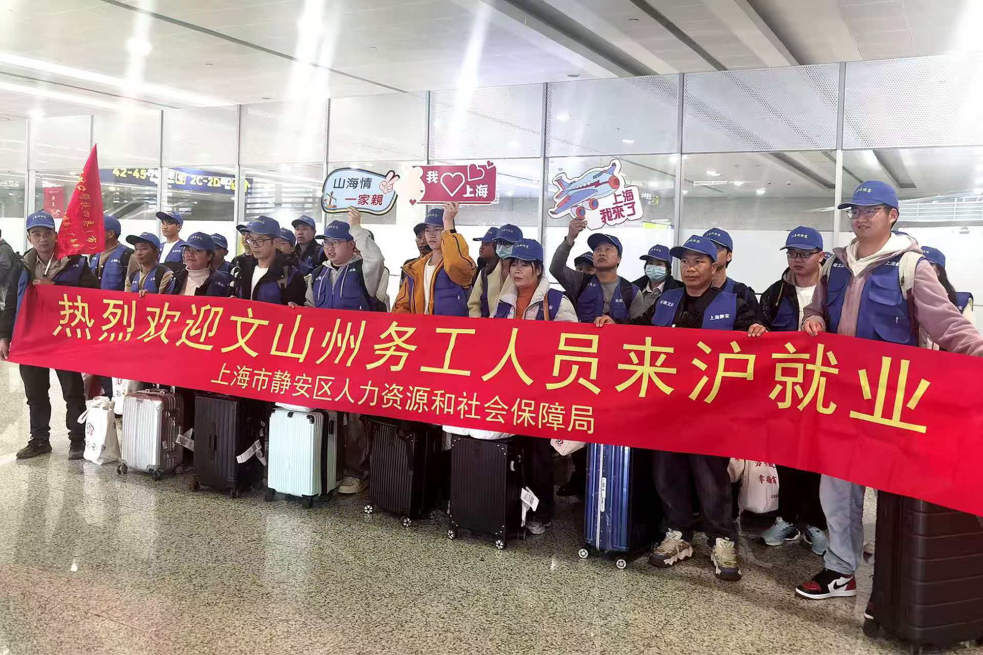 2月21日,来自云南省文山州的35名劳动者,搭乘“点对点”包机顺利抵达上海浦东国际机场。