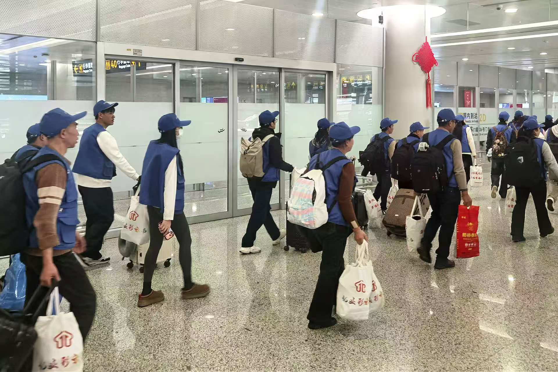 2月21日正月初五,上海浦东国际机场到达出口,35名来自云南省文山州的劳动者陆续走出航站楼。上海静安区人力资源和社会保障局的工作人员早已等候多时,为他们送上装有生活用品和就业服务指南的“新春暖心大礼包”。