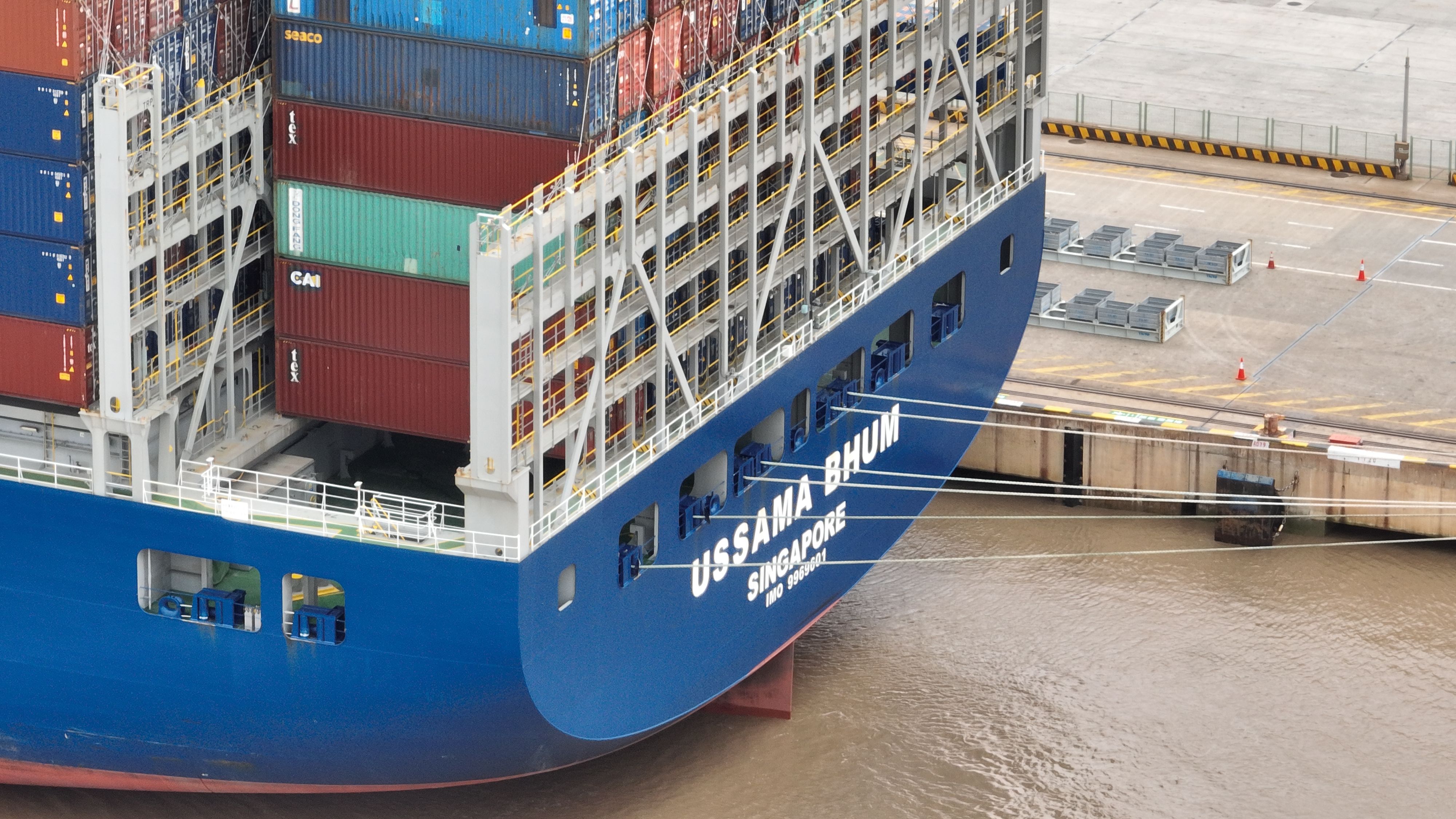3月3日,上海洋山港一艘主营波斯湾航线的新加坡籍“宏漪”轮将缩短航线至印度。受访者供图