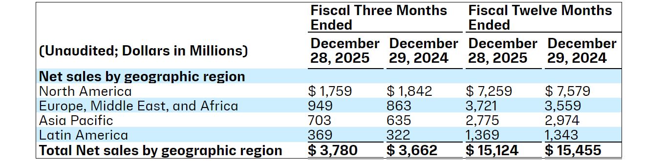 作为科赴的最大市场,北美市场在2025年实现净销售额72.59亿美元,同比下滑4.2%;EMEA市场净销售额由上年同期的35.59亿美元增长4.55%至37.21亿美元;拉丁美洲市场的净销售额同比增长约1.94%至13.69亿美元;中国所在的亚太市场实现净销售额27.75亿美元,同比降幅约6.7%。
