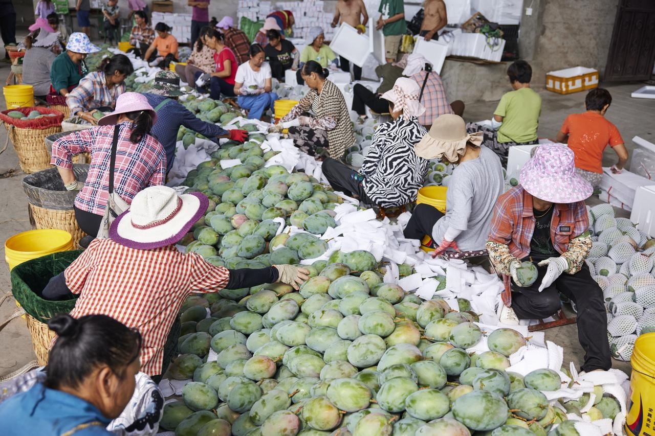 攀枝花的芒果在直播间卖出后,村民们打包发货。