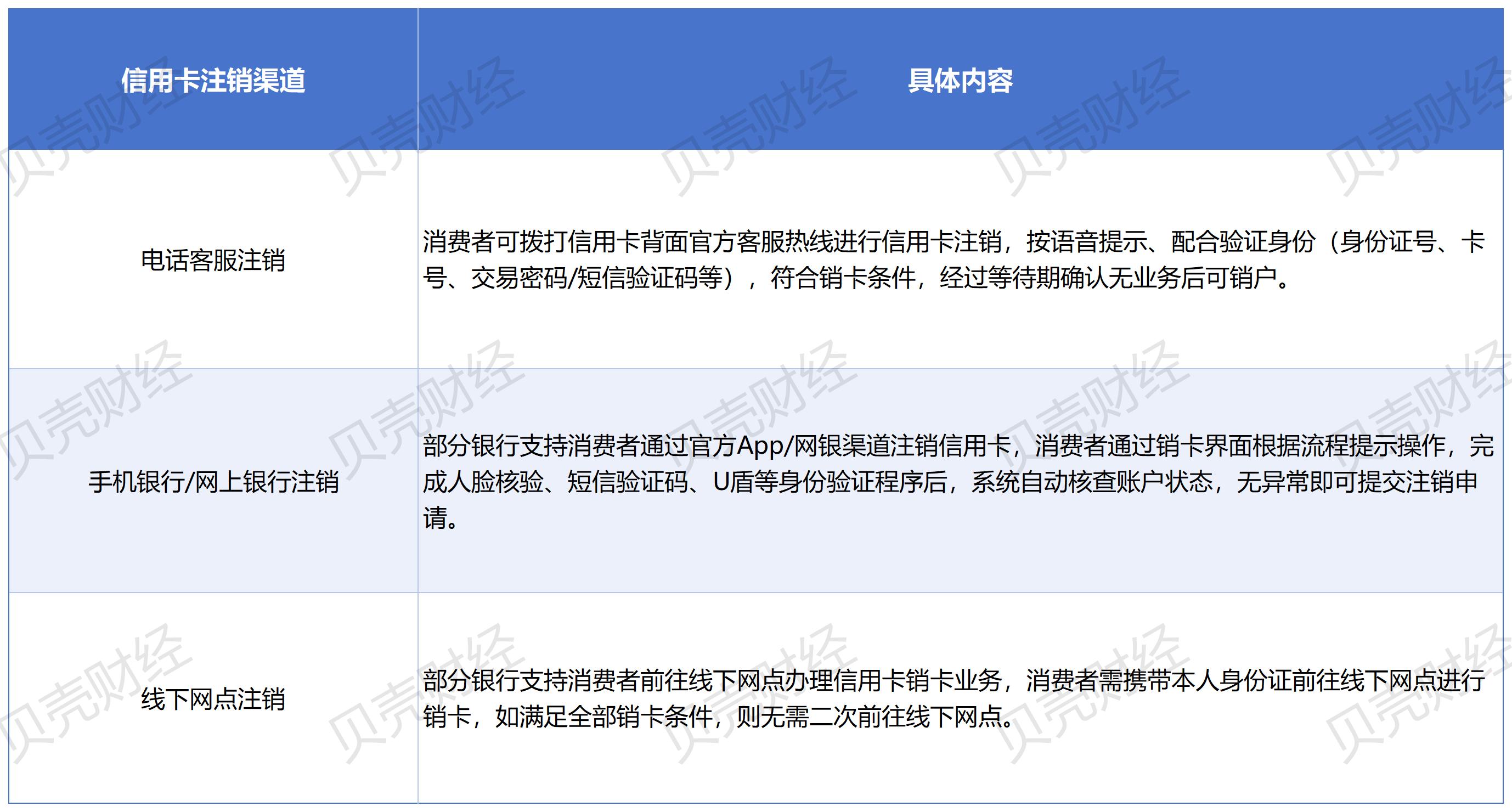 需要关注的是,“手机银行/网上银行注销”和“线下网点注销”均为部分银行支持的信用卡注销渠道。