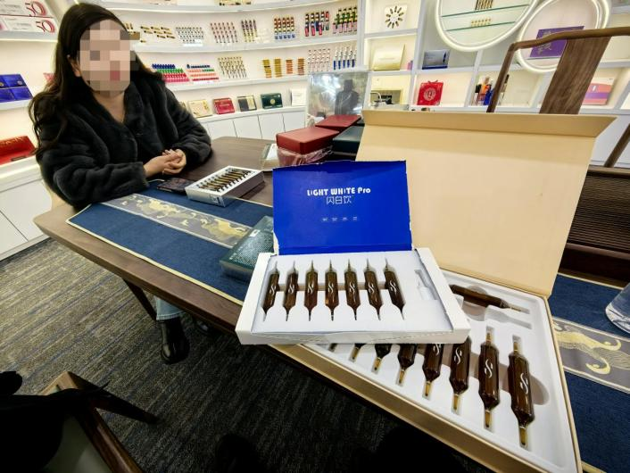 “赋生堂健康”一位负责人称:“我们专做‘万能饮’。(这产品)成本1毛钱,贴个进口标签一盒就卖几百元。”