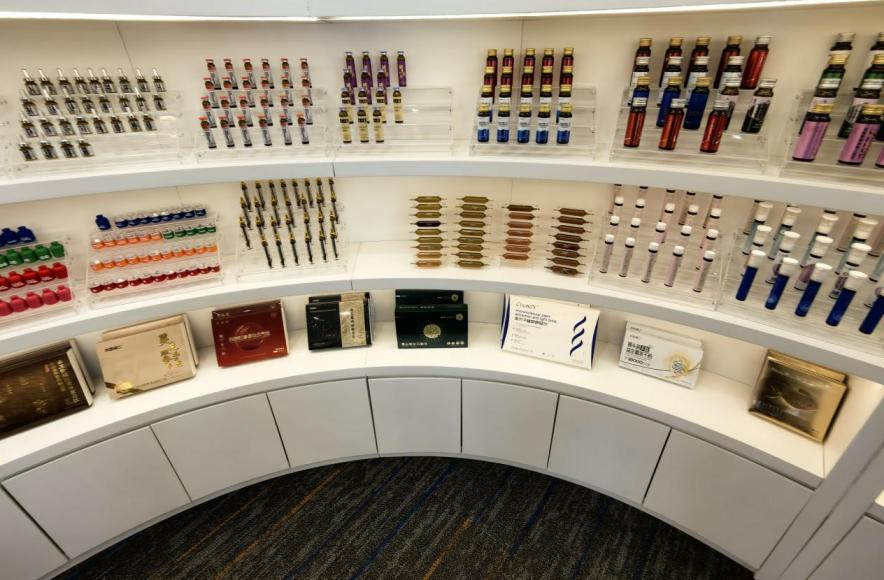 安徽省志医堂健康产业发展有限公司在河南郑州办公室展示可以生产的产品。新京报贝壳财经记者俞金旻摄