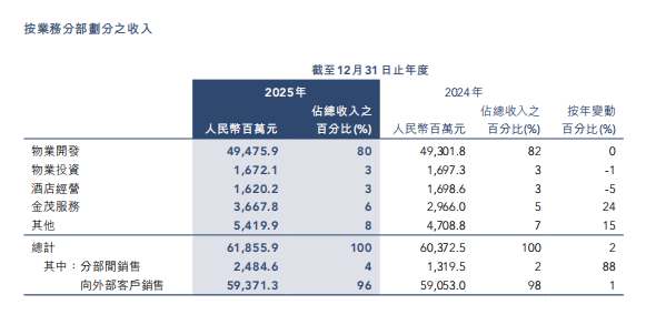 目前,物业开发依然是金茂业绩的“压舱石”,2025年该业务实现收入494.76亿元,占总收入八成。对于中国金茂寄予厚望的“第二增长曲线”,远未形成能与物业开发业务并驾齐驱的支撑力量。