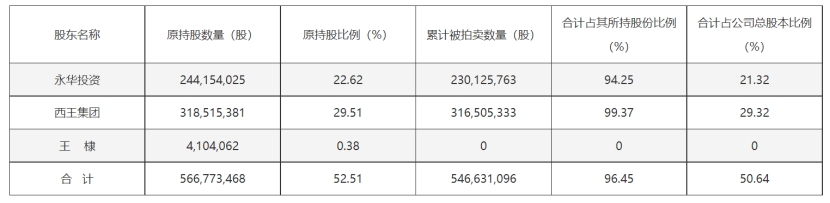 西王食品股份被拍卖。