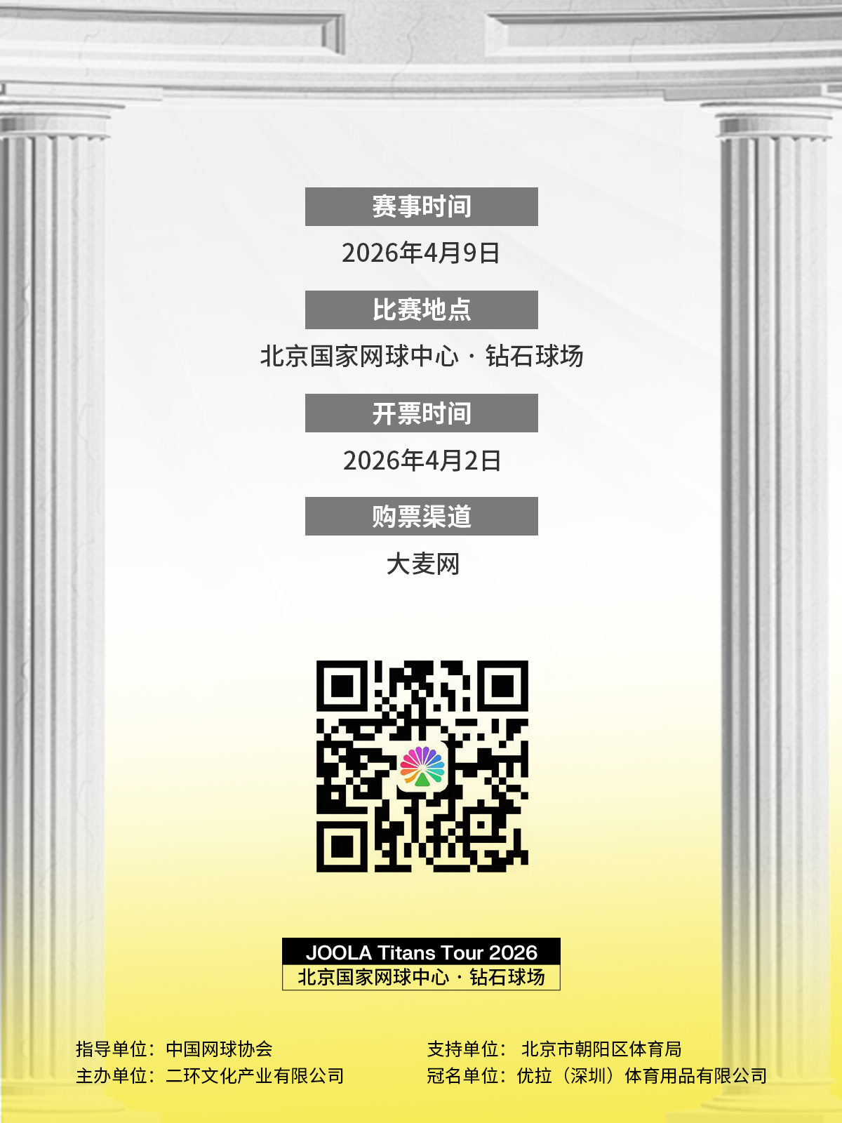 2026 JOOLA匹克球明星表演赛门票已于4月2日18:00在大麦网正式开售。这个春天,让我们相约钻石球场,与传奇并肩,与未来挥拍!
