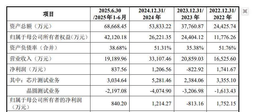 贝壳财经记者注意到,晶圆测试业务(即探针卡的研发、生产和销售)的净亏损逐年扩大,财报显示,该业务在2022年-2024年分别净亏损1613.43万元、3206.98万元、4074.90万元,2025年上半年净亏损2197.08万元。