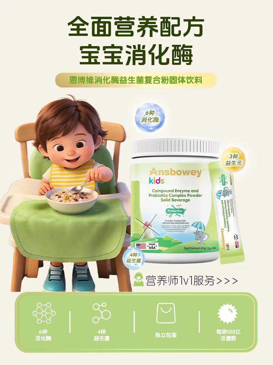 据客服介绍,该复合酶粉的核心作用是调节肠道菌群平衡、辅助改善肠道消化吸收功能,进而间接帮助改善因肠道屏障受损导致的过敏问题,如过敏性鼻炎、湿疹、食物不耐受等,“尤其适合过敏性体质+肠道功能紊乱,大人或婴幼儿都可食用”,且孩子消化问题改善后可以继续食用以起到预防效果。