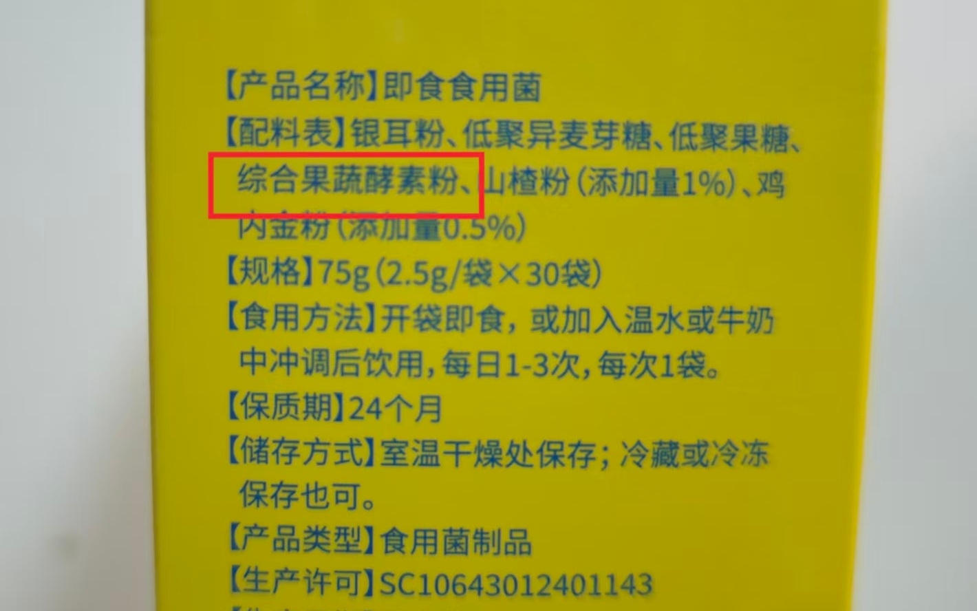 对于这款产品的真实属性,该店客服称之为食用菌,而非消化酶。但也表明,虽然产品配料表中未标注酶成分,但添加的综合果蔬酵素粉富含17种酶,“针对肠胃缺酶/酶失衡易诱发肠胃不适的便秘、拉肚子、积食胀气、肠道菌群混乱等全面改善”。