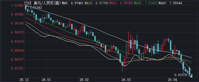 4月14日早间,在岸、离岸人民币兑美元汇率先后收复6.82关口,最高分别触及6.8189、6.8134,双双创下2023年3月以来新高。同日中国外汇交易中心公布的人民币汇率中间价为1美元对人民币6.8593元。