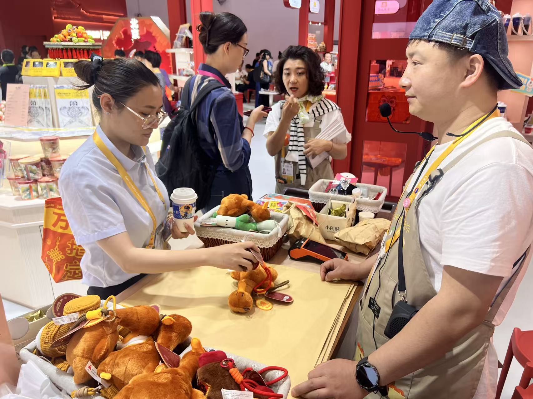 老字号拥有厚重的品牌文化积淀,但同时也用新潮方式呈现品牌文化新表达。首旅集团展厅内的全聚德好鸭好呀坊,通过打造百年老字号的潮玩新空间,实现非遗烤鸭文化的萌趣新表达,人们可以体验一下做烤鸭卷饼的全流程。展台工作人员告诉记者,不少人专门购买这一毛绒玩具,就是想亲自体验一把做烤鸭卷饼的乐趣。