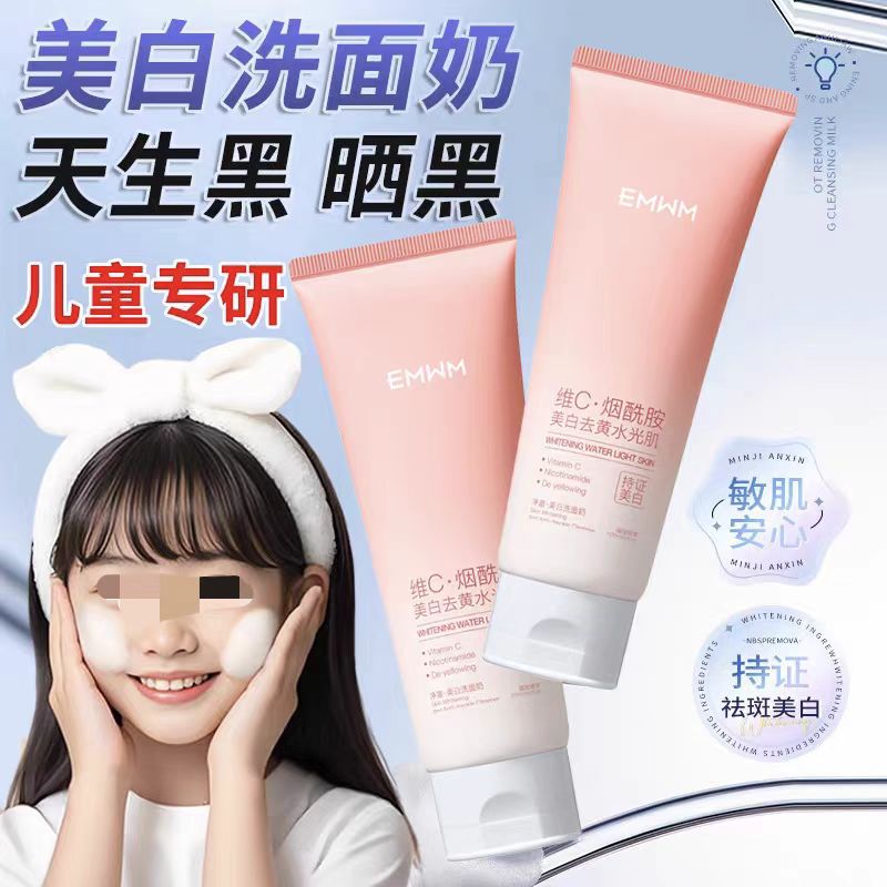 商家宣称其EMWM洁面乳“儿童专研”,但产品没有“小金盾”标志。 电商截图