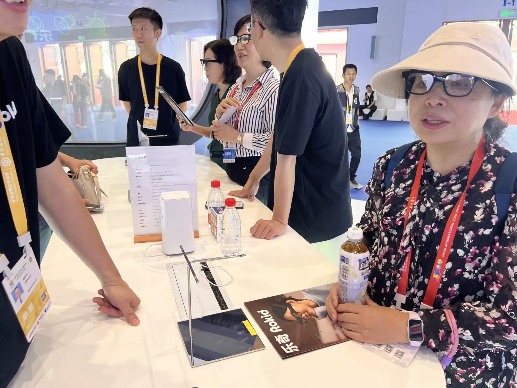参展企业展示的智能化城市健康服务中心吸引观众打卡体验。