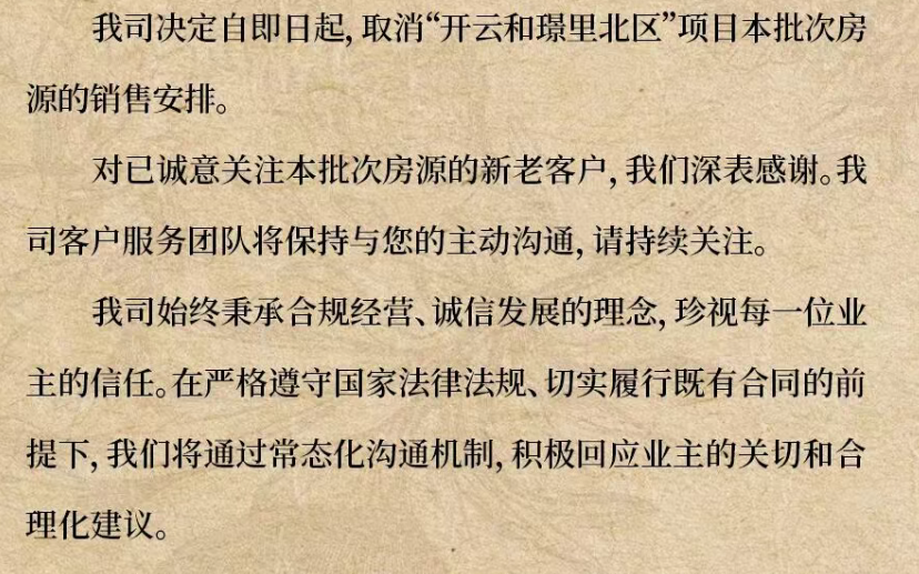 浦开云璟的案例对市场是一次告诫:对于开发商来说,应该守住品质与诚信的底线,对于购房者来说,房价有涨有跌,应该守住契约与理性的底线。