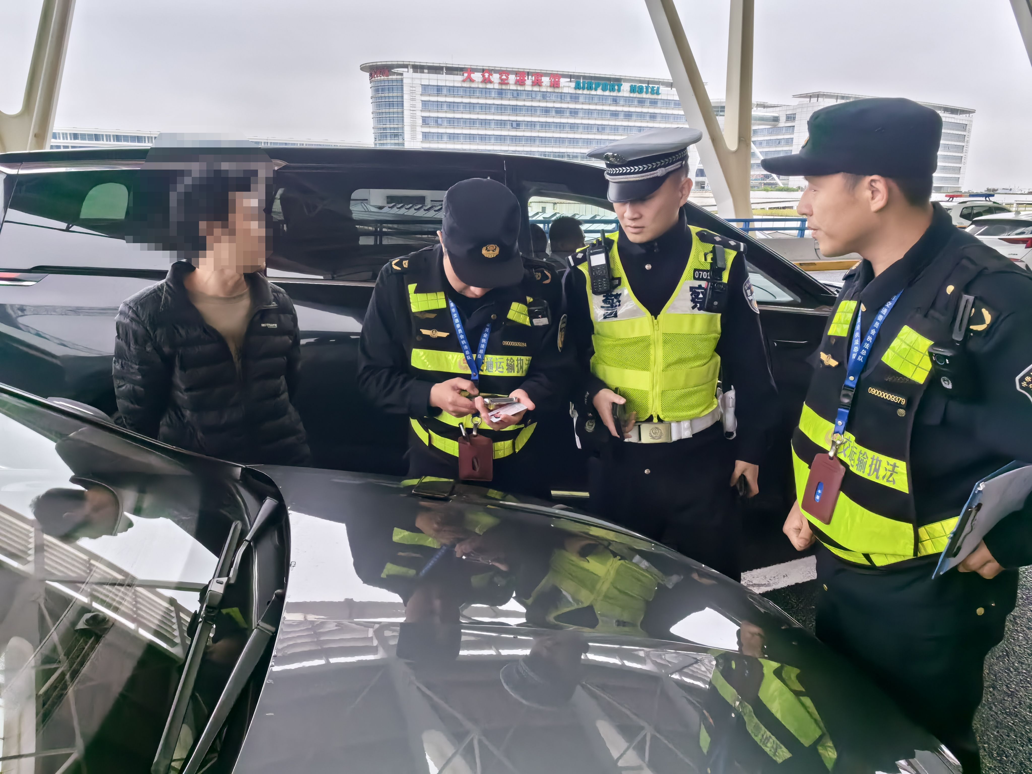 上海机场警方会同交通执法部门对涉事司机进行检查。上海警方供图