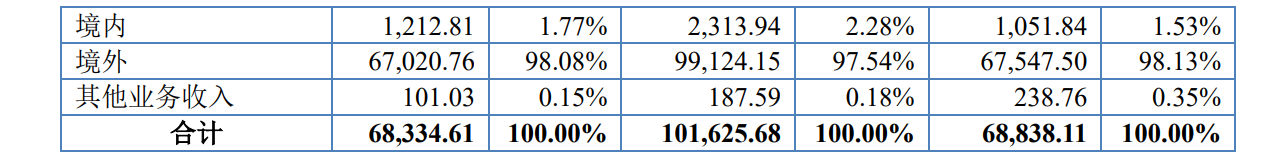 去年1月-8月营收6.83亿元,境外销售占比超九成