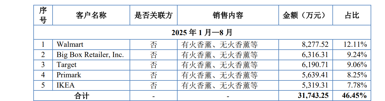 沃尔玛、宜家、塔吉特(Target)、ZARA……美通香薰的客户名单堪称“豪华”。2024年,该公司营收实现了47.63%的同比增长,原因包括“通过与沃尔玛等大型客户的合作深化,下游客户采购规模进一步扩大。”