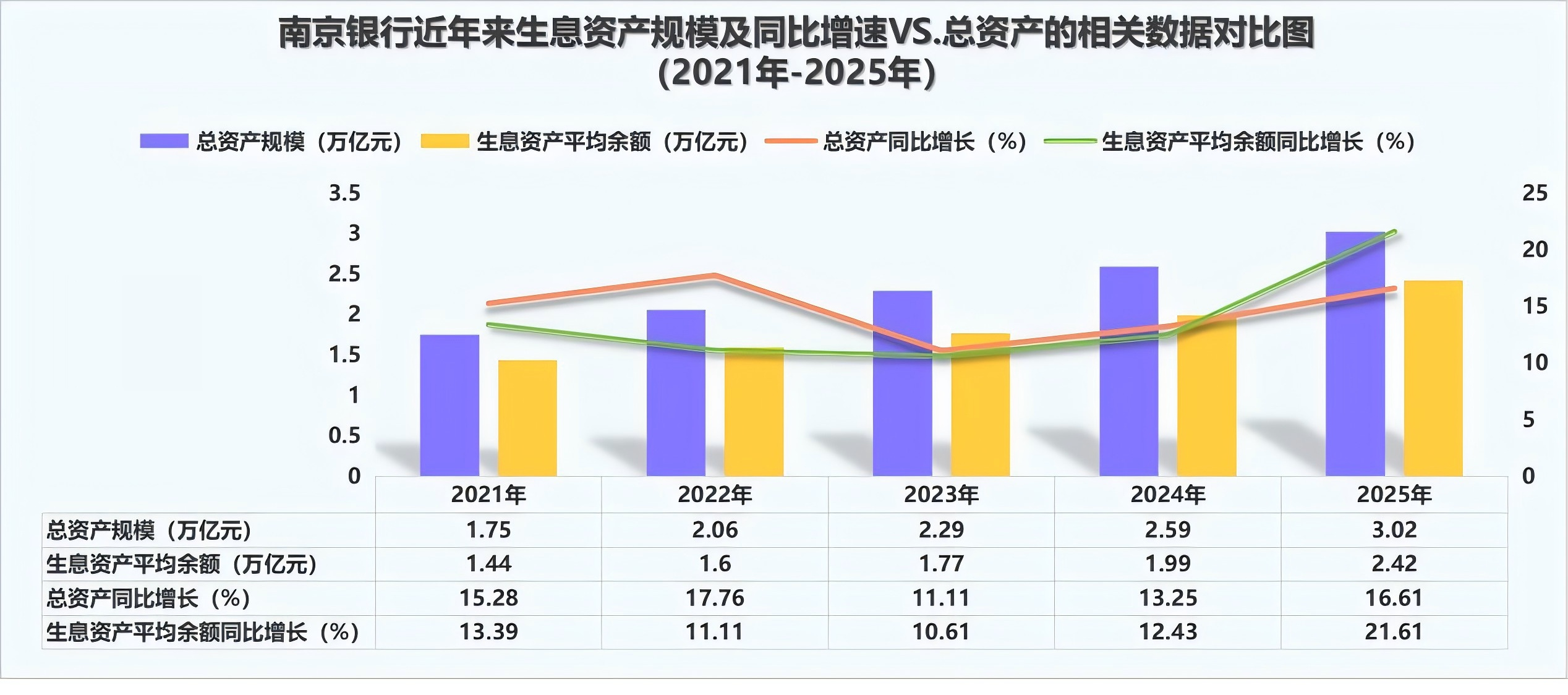 这一表现可从规模与结构两个维度理解。规模上,2025年南京银行生息资产约2.42万亿元,同比增长21.61%,高于总资产增速5个百分点;而从近五年看,生息资产与总资产增长基本同步,为利息收入提供了坚实基础。