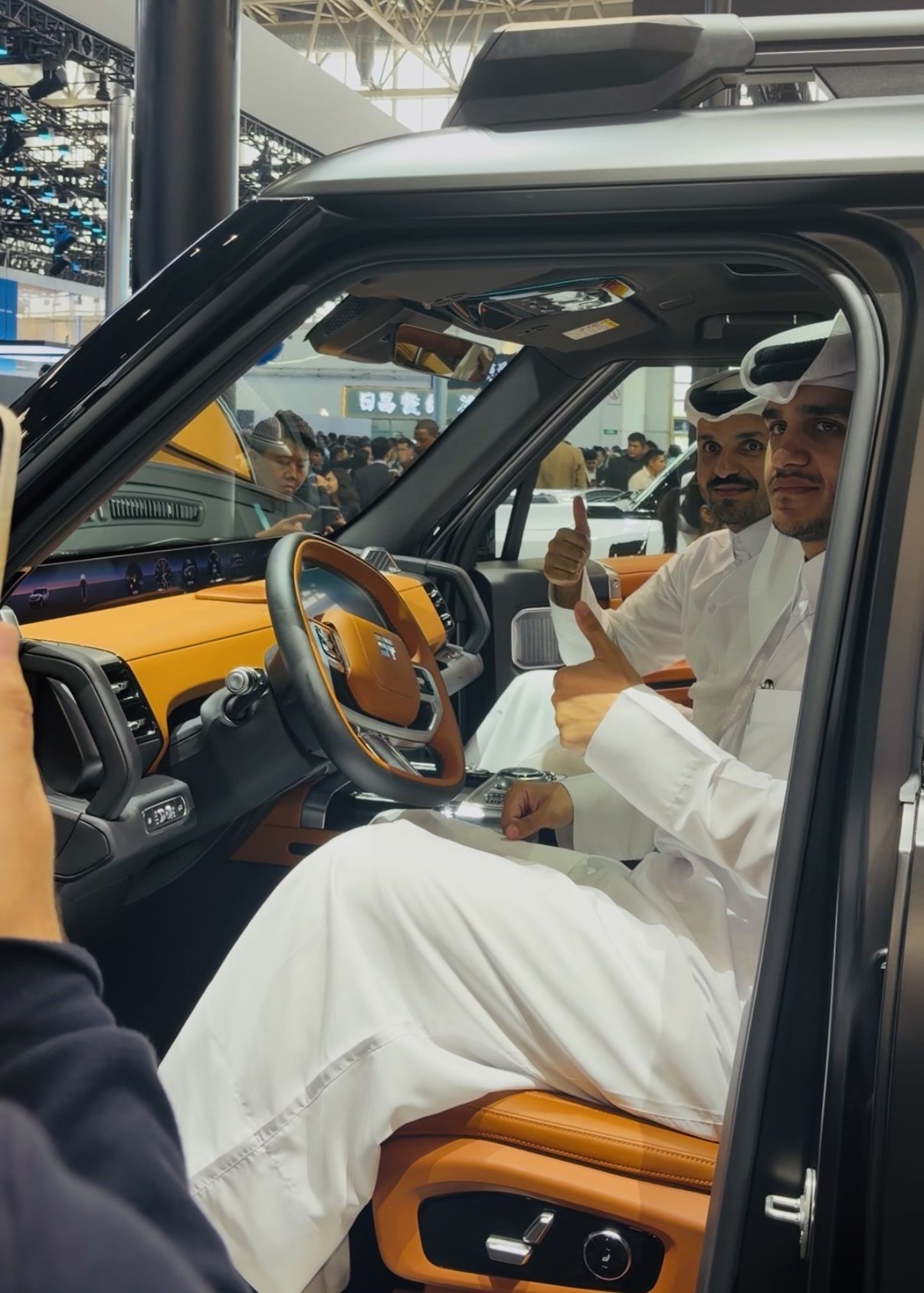 中东人在捷途车里打卡留念。新京报贝壳财经记者林子 摄