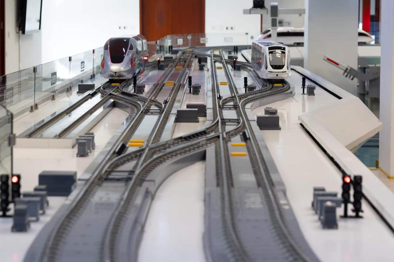 在中国通号的高速铁路信号系统动态测试实验室,有一条1:200的真实钢轨,火车模型依照信号灯有序通过。