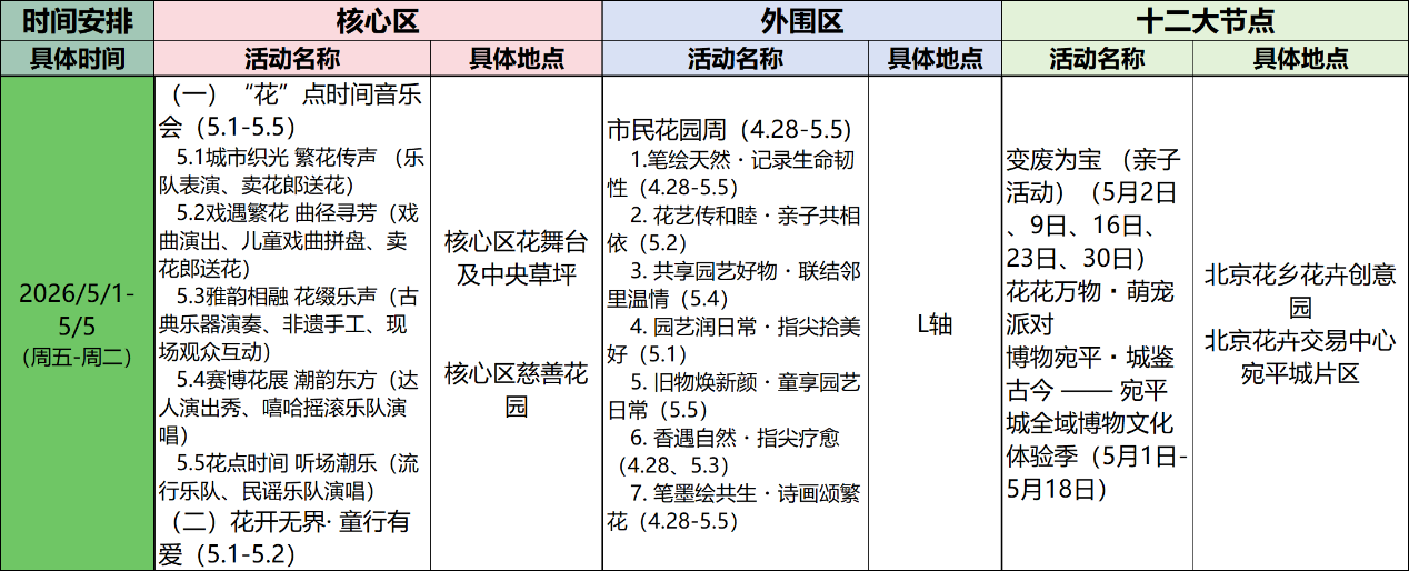 展期内还将推出20余场特色主题活动,覆盖不同年龄层需求:丽泽国际消费季将携手知名IP打造“花香伴书香”世界文学嘉年华,实现文字与自然的双向治愈;“乐学公园”成果展、木屋大赛、520浪漫告白、花间时间音乐会等活动将陆续登场,全方位丰富市民游玩体验。