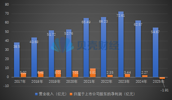 2025年,紫燕食品实现营业收入约32.38亿元,同比下滑3.7%;归属于上市公司股东的净利润约2.36亿元,同比下滑31.84%。