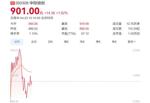 A股又一万亿巨头诞生 中际旭创总市值突破1万亿元