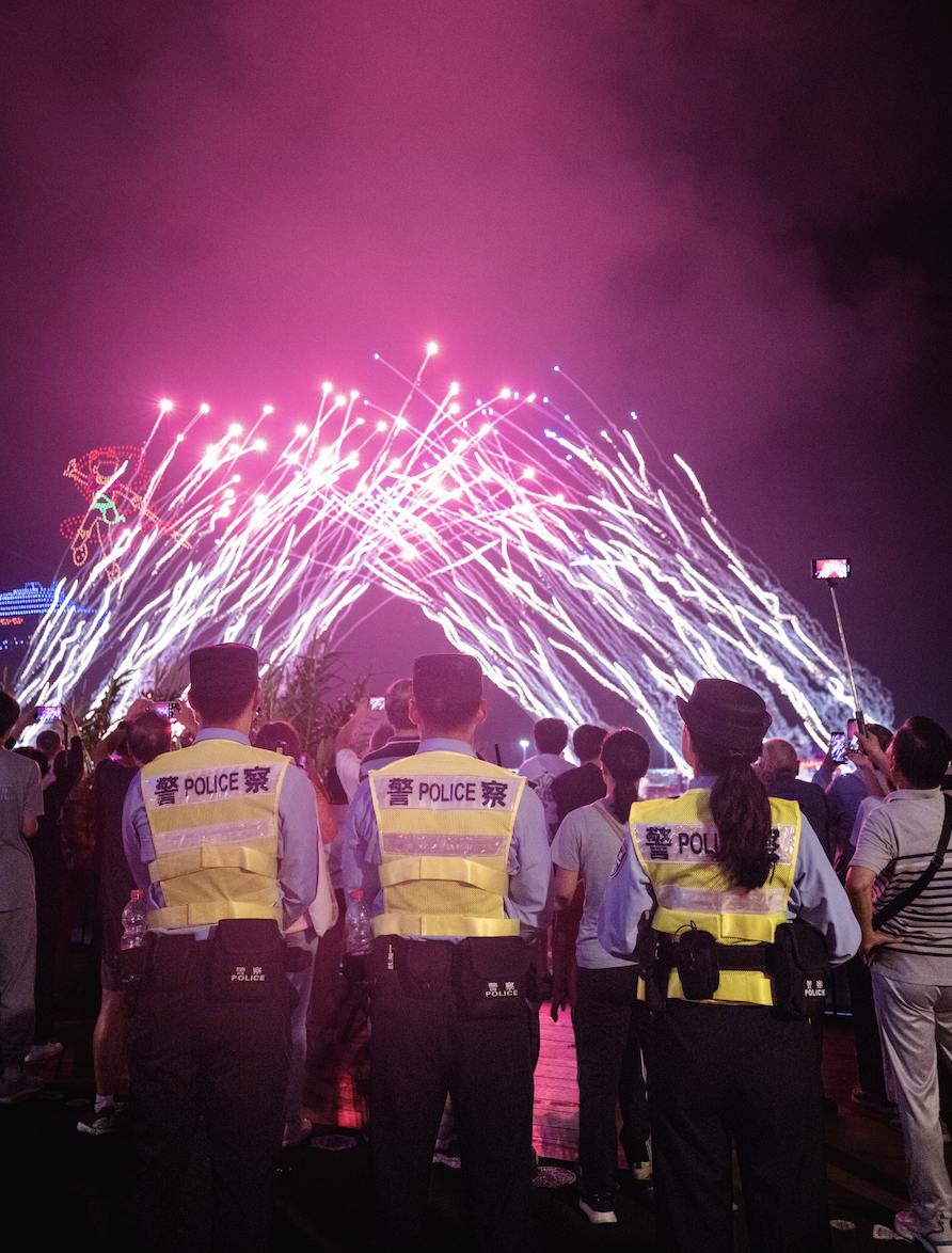 吴淞口国际邮轮港上演大型无人机与烟花秀,以“致敬祖国”为主题,用科技手段将孙悟空腾云驾雾、天宫遨游的国潮场景搬上天幕,邮轮、烟花与国潮元素交织,打造独特的港口夜间景观。长江航运公安局上海分局岸线投入120余名警力,设置8个执勤点位,采取分流管控措施,有效疏导观赏人流。