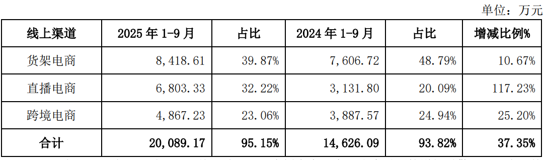 对于线上渠道带来的营业收入增长,太湖雪表示,公司通过精细化运营构建覆盖广泛的“全域直播”营销体系,在核心电商平台协同推进“品牌自播”与“达人代播”,显著提升投放效率;同时持续加码内容建设,提升小红书、短视频等内容质量,并不断完善海外社交媒体矩阵,增强全球化品牌影响力。因此,今年前9个月,公司线上渠道实现销售收入同比增长35.45%。