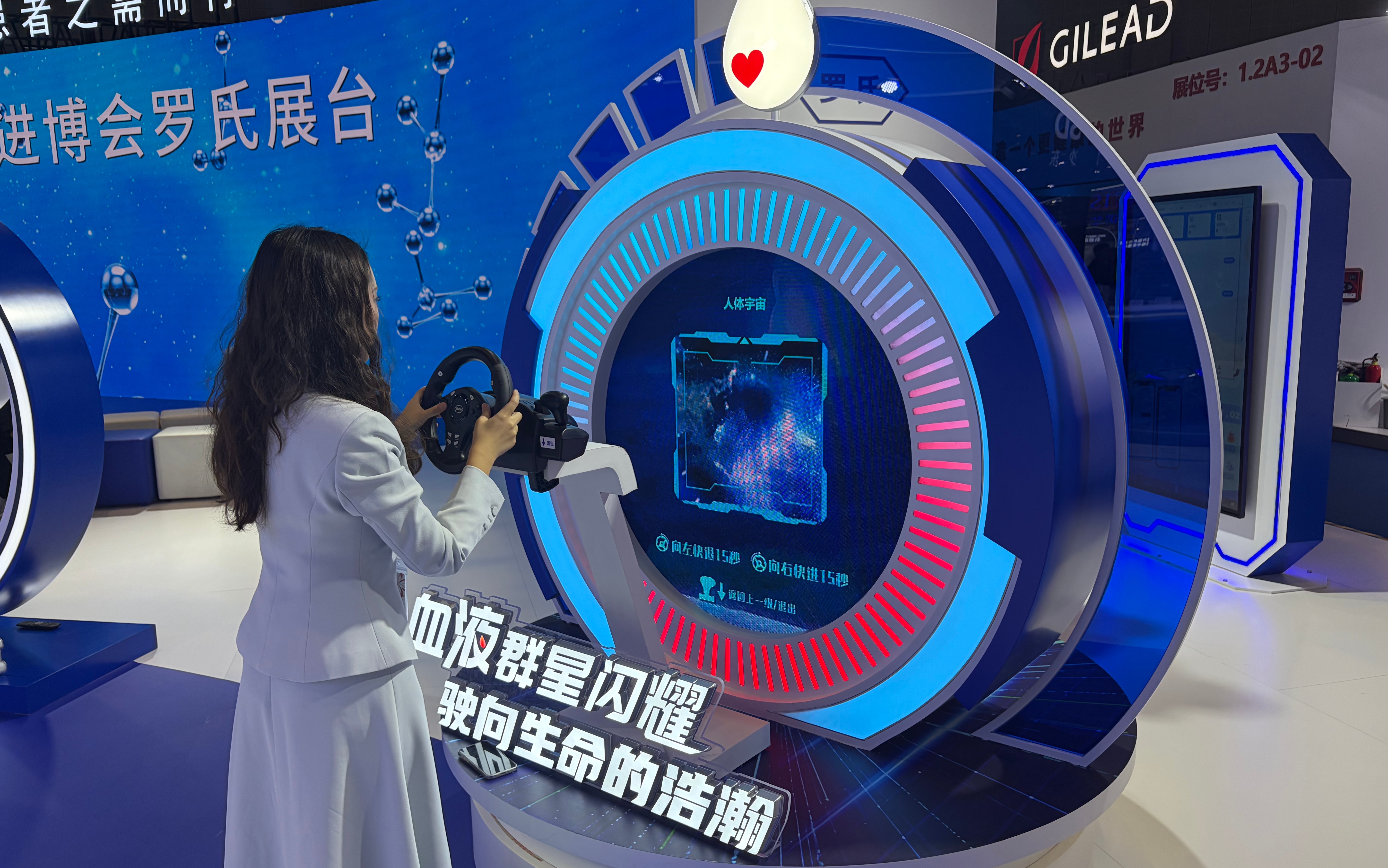 医疗技术往往存在一定的认知门槛,非专业人士不易理解。为更好地借助进博会平台,将前沿健康理念传递给更广泛的参观者,让大众领略到先进的医疗技术,第八届进博会医疗器械与医药保健展区的众多展商以黑科技助力,“花招百出”,将晦涩的医学知识等转化为易于理解的视觉与互动体验。本届进博会期间,新京报记者带你“花式”逛馆,边玩边体验医药高科技。