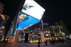 其实,世贸天阶最惹人注目的就是长250米、宽30米的巨型电子天幕。据悉,这个巨型天幕耗资2.5亿元,是亚洲最大、全球第三大规模的液晶显示屏,由曾获奥斯卡奖和四次艾美奖的好莱坞舞台大师JeremyRailton担纲设计。