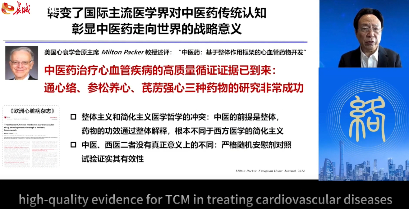 世界中医药学会联合会副秘书长徐春波表示,中医药的发展根基在于传承,生命力在于创新,络病理论正是中医药传承创新的典范。在吴以岭院士等专家团队的努力下,络病理论在理论创新、成果转化、标准化与国际化方面取得丰硕成果,不仅构建了络病理论创新转化全国重点实验室,推动中医络病学列入国家高水平学科建设名单,多项高质量循证研究成果也在《美国医学会杂志》《自然·医学》《欧洲心脏杂志》等国际顶级期刊上发表。她呼吁各方进一步加强学术交流与国际合作,共同推进中医药标准化与国际化进程。