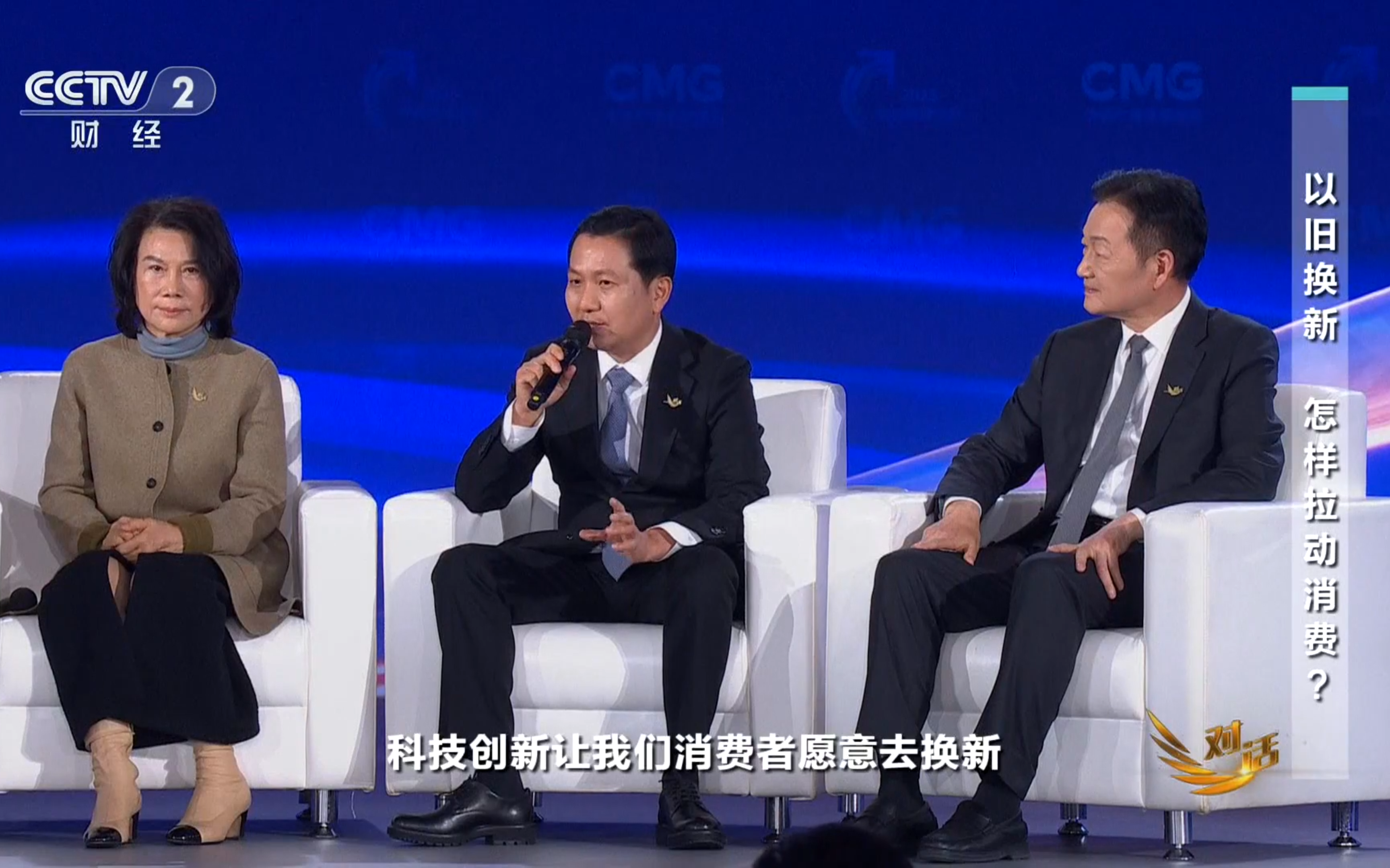 东风汽车总经理、党委副书记冯长军(中)做客央视财经《对话》。企业供图