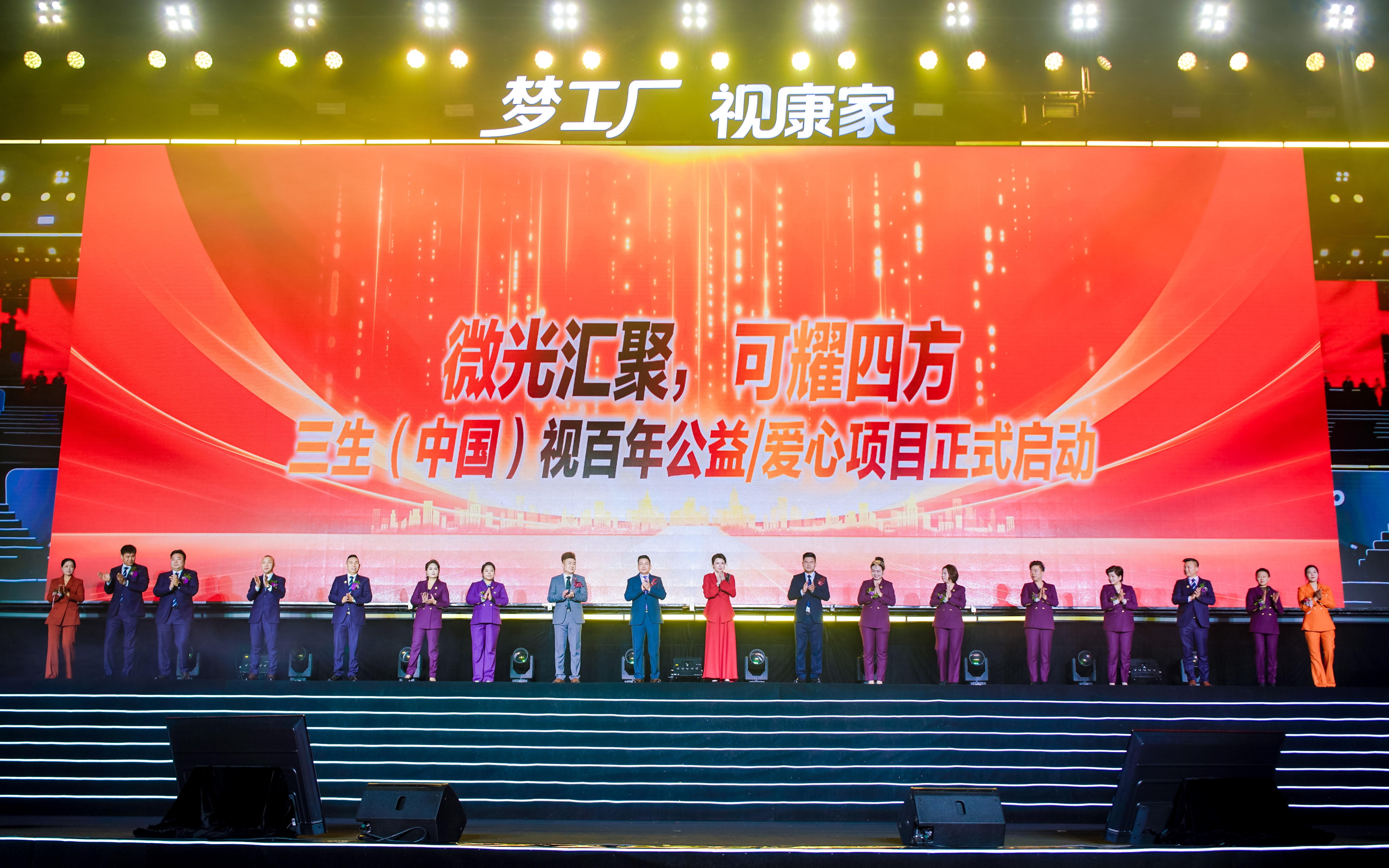 企业的价值在于商业成功,更在于社会担当。盛典现场,“微光汇聚 可耀四方”公益项目正式启动。该项目旨在将专业的眼健康筛查、科普教育与关怀服务,精准送达需要关切的人群,让清晰“视界”的福祉惠及更广泛的群体,以实际行动提升公众眼健康素养。此举切实响应了“健康中国”战略中关于强化基层眼健康服务的号召,展现了三生视百年的宏大使命与品牌担当。