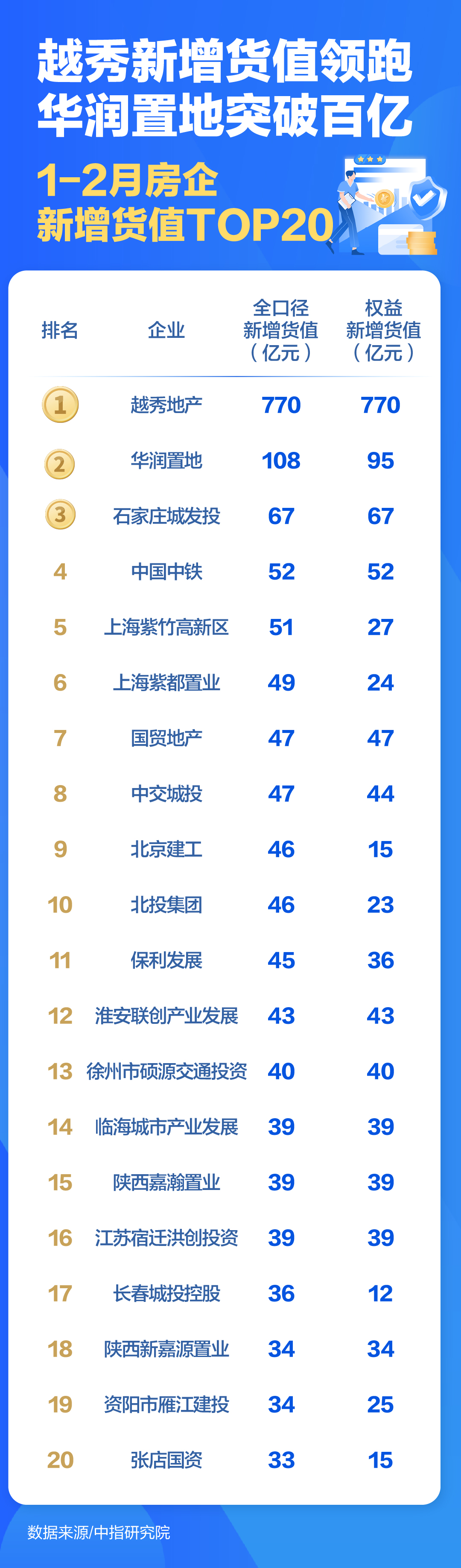 中指研究院分析人士认为,越秀地产位列广州、上海两个城市拿地金额榜单前列,展现头部房企跨区域拿地的能力。