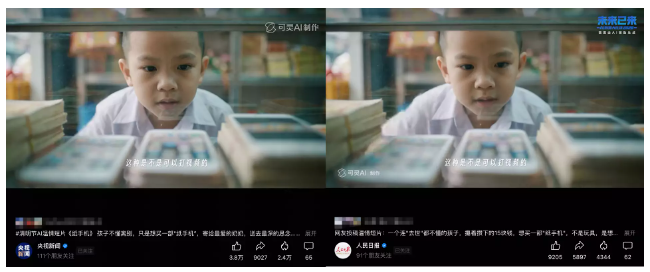 过去几天,这支由可灵AI制作的短片在全网疯传,全网播放量超4000万。短短五分钟的片子,被大家反复观看。该片讲述了一个连“去世”都不懂的小男孩,却想用自己攒下的15块钱,给奶奶烧一部“纸手机”的故事。卖纸器的老板先画了一部假手机打发他,得知真相后却追了出去,用“信号不好”“奶奶付过钱了”这些略显笨拙的借口,温柔地帮小男孩圆了这个梦。