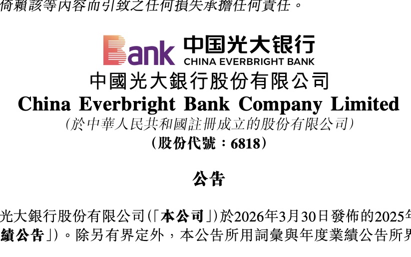 光大银行发公告改数据 分支机构资产规模确认16小时前
